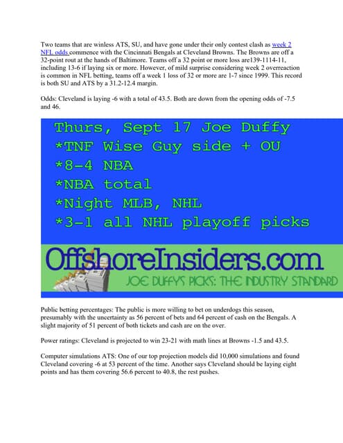 Daily Wager: Week 2 NFL Betting Preview Bengals vs. Browns TNF #ComputerBettingSystems #TopRankedSportsHandicapper #sportspicks #SportsHandicapper #sportsbetting https://t.co/JGFXmPazKv